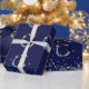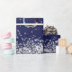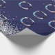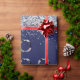 Papier Cadeau Photo de Noël bleu marine en argent confetti
