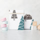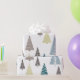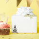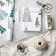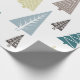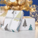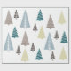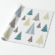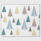 Un enveloppement cadeau de Noël photo minimal avec cinq arbres géométriques de Noël sur un arrière - plan blanc immaculé, enveloppement cadeau minime idéal pour la saison des Fêtes.