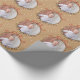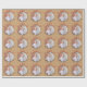 Ce papier d'emballage cadeau de Noël présente un graphique d'un ornement d'arbre rond avec un cadre photo personnalisé. Les mots "Joyeux Noël" entourent l'extérieur du cadre photo. L'arrière - plan est brun clair avec des points de flocon blanc. Photographie © Storytree Studios, Stanford, CA