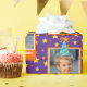Enveloppez vos cadeaux dans un papier d'emballage violet personnalisé festif qui présente un amusant étalage d'étoiles et de cercles orange et jaune. Personnalisez ce design lumineux avec une photo de votre petit garçon ou fille d'anniversaire, avec un joyeux casquette d'anniversaire bleu. Ajoutez une touche spéciale avec un accueil personnalisé, comme "Joyeux anniversaire, [nom de l'enfant] !." Ce papier d'emballage fantaisie est parfait pour toute fête d'anniversaire d'enfant et ajoute une touche de magie à chaque cadeau.