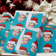 Baby Girl Head Face Photo Santa Hat Xmas Blue, Remplacez le visage de ce bébé par votre photo préférée (assurez-vous de recadrer autant que possible sur le visage et utilisez une application pour enlever l'arrière - plan) et personnalisez ce drôle de papier d'enveloppement de Noël avec votre enfant, mari, ou petit ami dessus! Aussi une surprise amusante et unique pour grand-mère et grand-père, maman ou papa.