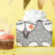 Boule de pickles orange et pagaie avec nom personnel sur motif à pois gris et blanc.