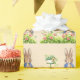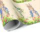 Pierre le lapin dans son jardin en train de vérifier sa maison d'oiseaux.