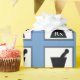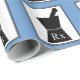 Le papier unique d'emballage cadeau de pharmacien dans le pilon et le mortier conçoivent sur un arrière - plan bleu. Perfectionnez pour envelopper un cadeau pour l'obtention du diplôme de PharmD ou n'importe quel pharmacien.