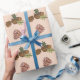 Papier Cadeau Pine de Noël cône & Branches Motifs rose vert