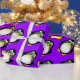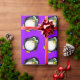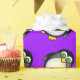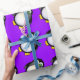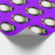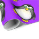 Pingouin mignon superbe de bande dessinée avec les yeux écarquillés verts sur un arrière - plan pourpre. Papier d'emballage parfait pour les anniversaires de l'enfant.