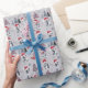 Papier Cadeau Pingouins dans Santa Hats scène hiver Motif gris
