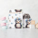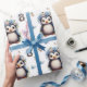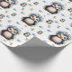 Papier Cadeau Pingouins d'aquarelle de printemps avec fleurs en