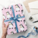 Papier Cadeau Pingouins d'hiver mignons sur Motif de Noël rose