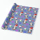 Adorable rouge, vert, pourpre, flocons de neige et pingouins bleu festif papier d'emballage de Noël de Noël de Noël de Noël.