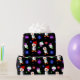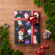 Adorable rouge, vert, violet, bleu clair flocons de neige et pingouins fête Noël papier d'emballage.