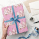 Papier Cadeau Pink Christmas Trees with Gold Stars