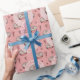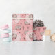 Pink Cutie Pie Baby Girl Wrapping Feuilles de papier avec des motifs de coeur rose et des tartes à la cerise dessinées à la main sur un arrière - plan rose chaud. Personnalisez avec le nom du bébé. Parfait pour les baby showers d'automne, d'abord Thanksgiving, les anniversaires d'octobre et de novembre, les premiers anniversaires, les nouveaux bébés et les cadeaux pour les nouvelles mères.