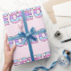 Papier Cadeau Pink Purple Ombre Grille Coeurs Premier anniversai