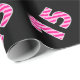 Ce design amusant de papier d'emballage comprend le numéro "15" avec un motif rayé rose foncé et rose clair, sur un arrière - plan de couleur noire. Un papier comme celui-ci peut être utilisé pour envelopper des cadeaux donnés à quelqu'un qui célèbre son 15e anniversaire, ou à un couple célébrant son 15e anniversaire de mariage, ou pour célébrer un autre quinzième événement ou jalon. [~Z0000379]