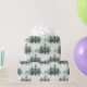 Ce papier d'emballage de vacances rustique présente une aquarelle motif d'une forêt à feuillage persistant de pins au pied d'une montagne.