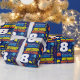 Texte moderne et pixelisé graphisme alien monstre personnalisé âge cadeau d'anniversaire papier d'emballage, avec typographie graphique et votre propre nom en orange, bleu, gris, blanc et jaune. Personnalisez avec votre propre nom (s'il vous plaît noter que tous les noms ne correspondent pas en raison de la nature de la police) et l'âge, actuellement lit Matthew 8, d'autres longueurs de nom sont disponibles, si vous avez besoin d'aide s'il vous plaît contactez-moi. D'autres articles correspondants sont disponibles. Uniquement conçu par www.mylittleeden.com seulement sur Zazzle.