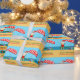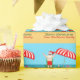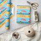 Ce joli papier d'emballage de Noël sur mesure en juillet rend parfait décor de fête d'été pour un bain de plage ou un rassemblement de piscine. Faites-en une extravagance amusante sur le thème du pôle nord avec le Père Noël dans ses maillots de bain à côté d'un parapluie de plage rayé rouge et blanc et des cadeaux. Je n'ai jamais vu M. Klaus en maillot de bain avant ! Le texte vert cravate ensemble le thème amusant de la fête de Noël.