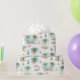 Ce papier d'emballage de Noël tropical festif présente un motif de scènes de plage de vacances avec des palmiers décorés de lampes à cordes colorées et des transats surplombant l'eau, entrecoupés de flamants roses dans des chapeaux de santa, et des mouettes perchées sur des pilons décorés.