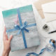Papier d'emballage blanc turquoise de plage décoré sur le thème de l'artisanat. Eté océan vagues tropicale enveloppement cadeau tropical. Belle, chic, tendance, moderne, cool, nautique. Copyright de l'image Marg Seregelyi Photography.