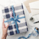 Papier Cadeau Plaid de ferme marine et blanc cassé dessiné à la