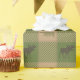 Papier d'emballage en plastique vert à thème cabine rustique avec des graphismes d'orignal et d'ours.