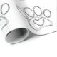 Empreinte de patte de chien de dessin en noir. Roulettes de papier d'emballage-cadeau personnalisées pour les maisons et les entreprises comme les boutiques d'animaux de compagnie. Vierge à l'arrière pour les messages manuscrits. Idéal pour les amoureux de les chiens.