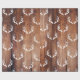 Papier d'emballage rustique en bois avec cerf blanc et motif de bois. Le arrière - plan est un modèle de planches en bois de grange foncé.