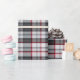 Plaque de tartan texturée grise avec fines bandes rouges et bleues.