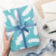 Ajoutez une touche légère et aérée à vos cadeaux avec ce papier d'emballage imprimé en plumes. Ce motif présente des illustrations de plumes de canard blanc contre un arrière - plan turquoise ou bleu aqua.