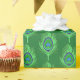 Papier Cadeau Plumes de paon, vert citron sur vert émeraude