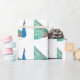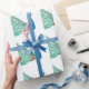 Papier Cadeau Plumes d'oiseau de paon bleu Aquarelle verte