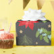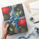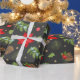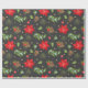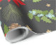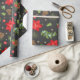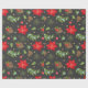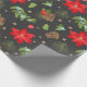 Ce papier d'emballage festif présente un motif poinsettia et pinecone sur un arrière - plan noir.