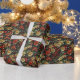 Papier Cadeau Poinsetia, fleurs rétro en rouge et vert