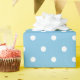 Un papier d'emballage construit avec un motif de point blanc de polka avec une grande distance entre les points sur un arrière - plan bleu-clair. Customisez l'arrière - plan bleu d'une manière simple.