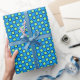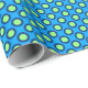 De grands points avec une bordure contrastée, basé sur un classique, motif moderne du milieu du siècle - des points vert pâle bordés de bleu marine foncé sur un riche arrière - plan bleu cérusé