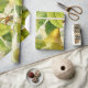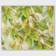 Des poires et des feuilles verts sur un motif arrière - plan blanc.