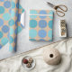 motif pois dans les tons de plage de midi : blues lavés et sable clair.