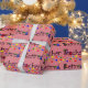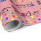 Le papier retiré d'emballage cadeau de professeur, multiple a coloré les mots qui indiquent simplement, "professeur retraité", avec le pois coloré lumineux.
