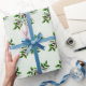 Estarfish blanche et papier d'emballage vert sur un rouleau. Un design de Noël pour les vacances tropicales. Deux étoiles de mer sont nichées dans des sprigs verts et recouvrent cette enveloppe cadeau de haute qualité qui vient dans une sélection de longueurs.