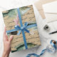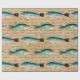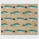 Papier Cadeau Poisson vert et écriture cursive sur Tan