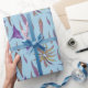Les poissons d'aquarelle et les rayons violets sont des créatures marines sympathiques sur ce papier d'emballage bleu vif. Parfois, ils se réunissent autour d'une rencontre des esprits.