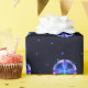 Des images fractales violettes et bleues brillantes évoquent l'étoile du Nord (Polaris) et les lumières du Nord. L'image est superposée sur un ciel nocturne, arrière - plan de starfield.