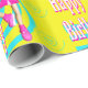 Papier Cadeau Pom-pom girl Joyeux Anniversaire Sur Jaune Lumineu