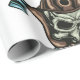 Un visage effrayant dans un masque avec feu de pompier et secourir autour. Cette conception semble vraiment efficace sur ces papiers d'enveloppement