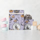 Ce papier d'emballage Custom Halloween, artistique mais élégant, présente des illustrations dessinées à la main à l'encre noire par Nathalie Portet et comporte 2 textes modifiables. Contre un bel arrière - plan pastel violet, des images de chariots vintages, de casquettes sorciers, de corbeaux noirs, de citrouilles, de toiles d'araignée, de chaudrons et de minuscules champignons mouchetés ornent ce papier d'emballage. Un cadre circulaire présente votre salutation personnalisée ("Happy Halloween" peut être changé en Félicitations, Happy 1st Birthday", etc.) et Nom. Idéal pour les Baby showers d'Halloween, 1er Halloween, 1er Anniversaire, Bébé d'Octobre, Nouvelle Mère, etc.