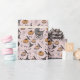 Ce papier d'emballage d'Halloween, artistique mais élégant, présente des illustrations dessinées à la main à l'encre noire par Nathalie Portet. Contre un bel arrière - plan rose vif, des images de chariots vintages, de casquettes sorciers, de corbeaux noirs, de citrouilles, de toiles d'araignée, de chaudrons et de minuscules champignons mouchetés ornent ce papier d'emballage. Idéal pour les Baby showers d'Halloween, 1er Halloween, 1er Anniversaire, Bébé d'Octobre, Nouvelle Mère, etc.