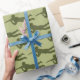 Emballage cadeau motif qui est autant amusant pour les adultes que pour les enfants, met en scène l'emblématique homme de l'armée verte en plastique dans sniper pose sur l'arrière - plan vert coordonné