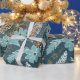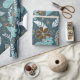 Papier Cadeau poudle paislies plumes fleurs boho motif turquoise