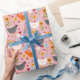 Papier Cadeau Poulets dans le Jardin Fleur Rose